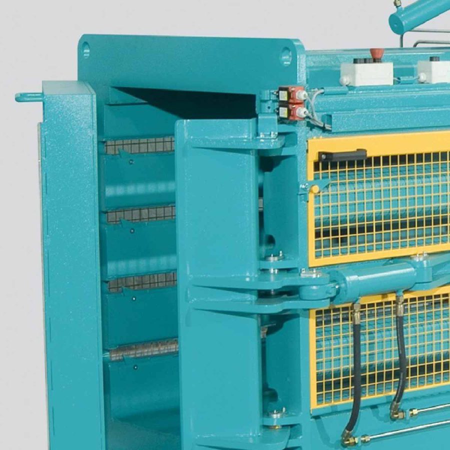 Deze horizontale balenpers is uitgerust met een hydraulisch vergrendelde deur en een grote laadopening met twee vulkleppen. Deuren openen en sluiten met een simpele druk op de knop. Beschermroosters zorgen voor maximale veiligheid.