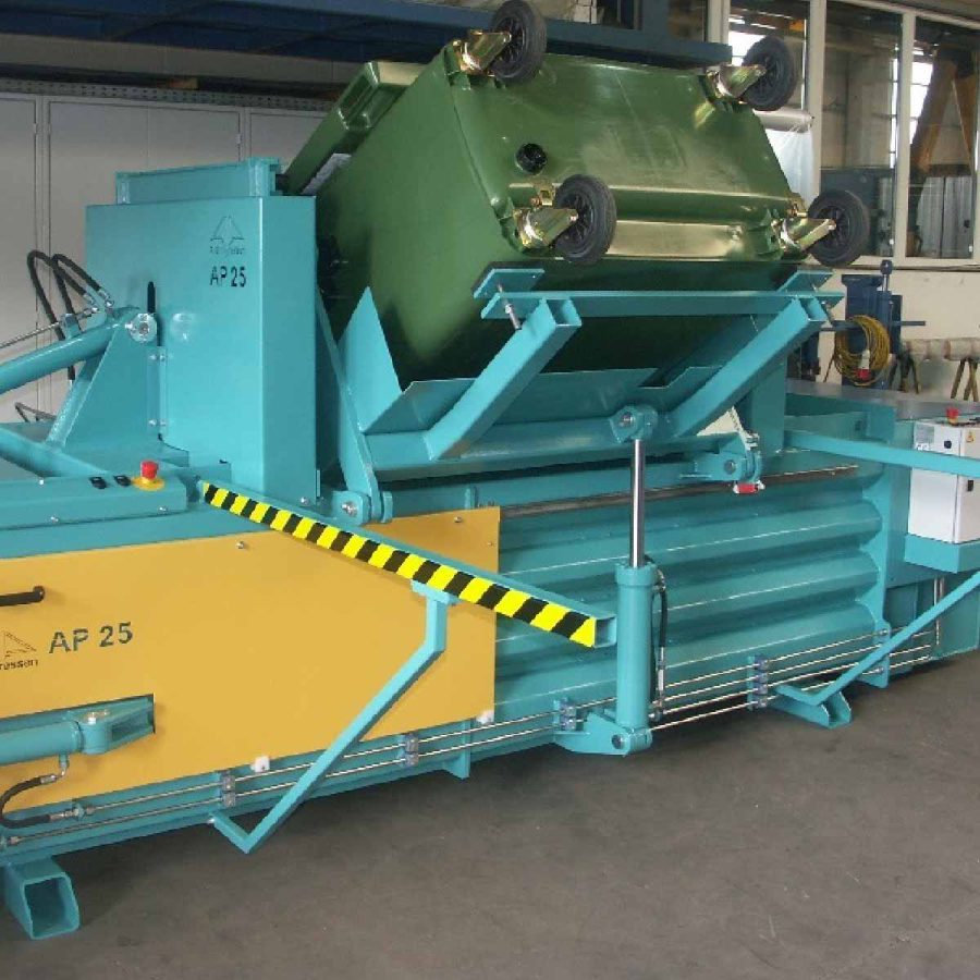 De AP 25 is een professionele balenpers voor universele toepassing en comprimeert ook moeilijk te recyclen materialen zoals PET-flessen, textiel, holle delen, plastic containers, conservenblikken en metalen containers tot 200 liter. In combinatie met een kantelmechanisme is de AP 25 de ideale oplossing voor industrie en magazijnen.
