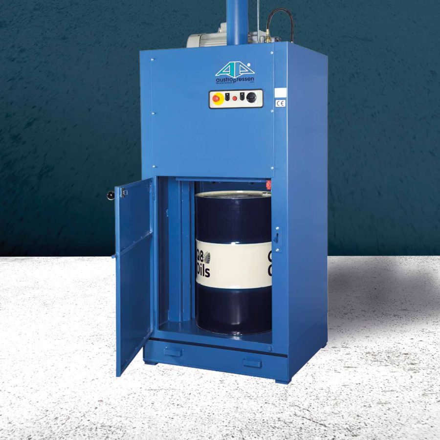 - Vatenpers ontworpen om het volume van vaten, blikken, vaten en containers tot 200 liter te verminderen.